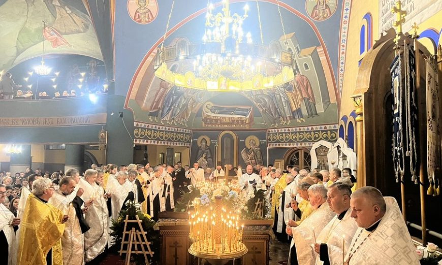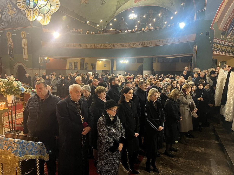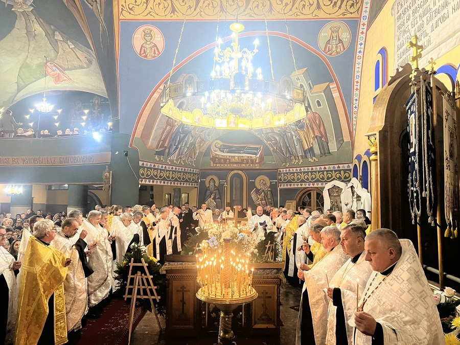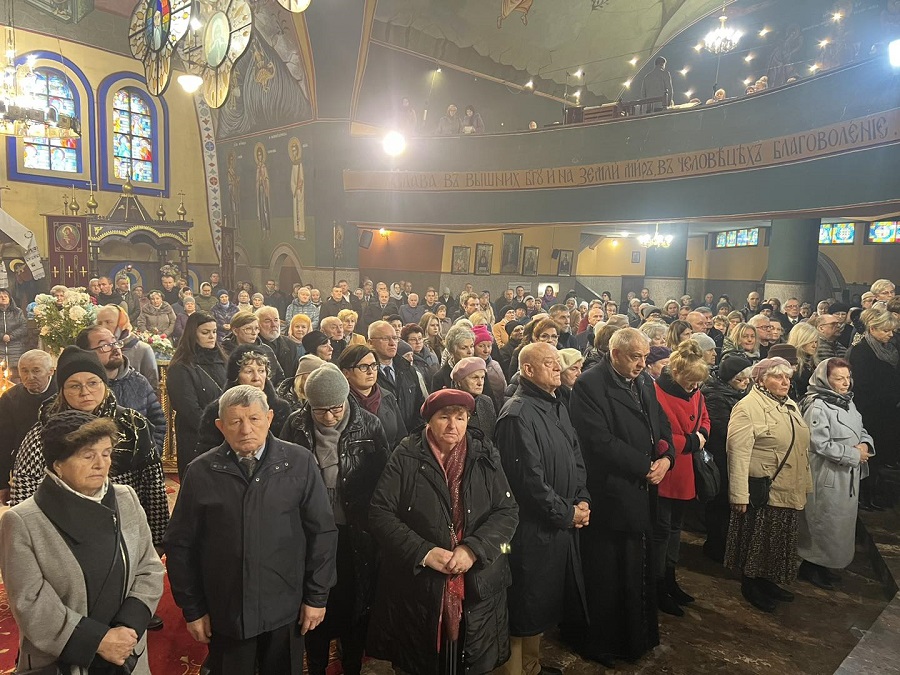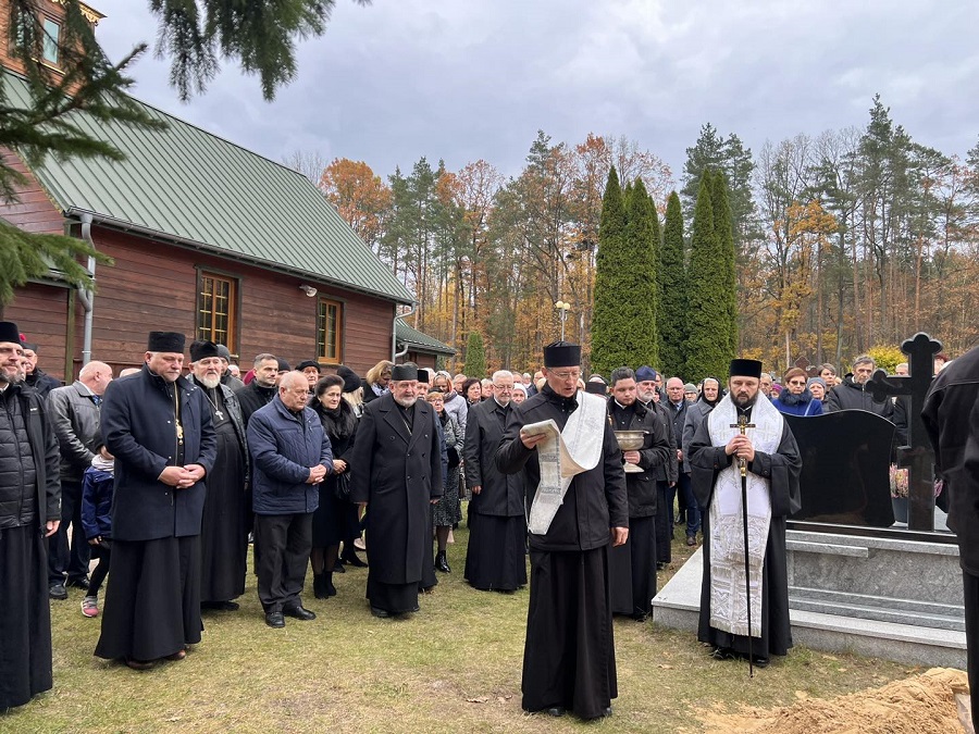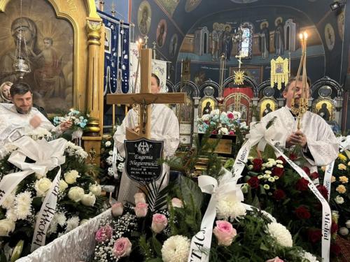 „Drodzy bracia i siostry. Dziś tłumnie stawiliśmy się wszyscy w pięknym soborze św. Trójcy, aby wziąć udział w panichidzie i aby tym samym wypełnić nasz chrześcijański obowiązek wobec nowoprestawlennoj matuszki Eugenii. Obowiązek wynikający w pierwszej kolejności z naszej wiary ale również, a może przede wszystkim, obowiązek wynikający z naszego głębokiego szacunku i miłości do Matuszki oraz wdzięczności za to kim była i jaką była wobec każdego z nas. Przybyliśmy tu aby wspólnie wznieść nasze modlitwy do Boga, prosząc o zbawienie i pokój dla Jej duszy, jednocześnie dziękując za całe jej życie. Bardzo trudno jest mówić o Matuszce w czasie przeszłym. Trudno jest tak mówić o kimś, kogo się znało prawie od zawsze i z którym się przyjaźniło prawie od zawsze. Dziś jednak, gdy stajemy w obliczu tego co nieuchronne i wobec tej chrześcijańskiej prawdy o tym, iż o całym naszym życiu i momencie śmierci decyduje Bóg, może nam się wydawać, że śmierć nadeszła zbyt wcześnie, że śmierć nadeszła w nieodpowiednim momencie. Szukamy wytłumaczeń i chcemy wyjaśnień… Spróbujmy jednak spojrzeć na to co się stało oczami chrześcijanina. Wszyscy wiemy, iż rolą matuszki jest wspieranie męża, swiaszczennika w głoszeniu Słowa Bożego i nauczaniu Świętego Prawosławia. I oto dziś w dniu, w którym Cerkiew wzywa nas do modlitwy za zmarłych, w dniu który Cerkiew nazywa dmitrijewskuju subbotuju, Matuszka Eugenia przyprowadziła nas wszystkich do cerkwi abyśmy pomodlili się za Nią i za wszystkich ot wieka poczywszych. Dzisiaj, 1 listopada 2025 roku, Matuszka Eugenia przypomniała nam, iż ta sobota nie jest żadnym dniem wolnym, a jest dniem wzywającym do swego rodzaju trudu, wzmożonej modlitwy o zbawienie dusz wszystkich naszych zmarłych przodków i bliskich. Tym samym do samego końca Matuszka Eugenia realizuje zadanie, które wzięła na siebie gdy kilkadziesiąt lat temu wstąpiła w związek małżeński z przyszłym księdzem Michałem. To zadanie, nielekkie i nieproste, godnie realizowała przez całe swoje życie. Bezustannie była przykładem dla parafian i innych żon kapłanów pokazując jaka powinna być żona prawosławnego duchownego. Skromna, dobra, życzliwa i troskliwa. Niosąca pomoc przy organizacji międzynarodowych festiwali, delegacji, wizyt. Oddana sprawom bliskim i dalekim zwykłym ludziom. Długo by można wymieniać rzeczy, w których wspierała księdza Michała. Jej rola była nieoceniona. Wszystkiemu temu towarzyszyła praca zawodowa w hajnowskim szpitalu, która tak pięknie wpisywała się w powołanie matuszki, jako tej która niesie pomoc, otacza opieką i wspiera w najtrudniejszych momentach. Wszyscy Ją ceniliśmy. Bracia i siostry, parafianie to wy między innymi byliście jej rodziną, ludźmi o których się troszczyła, których losem się przejmowała. Dlatego tak tłumnie stawiliście się w cerkwi podczas tego żałobnego nabożeństwa. Dziękuję wam za to w imieniu Jej męża, księdza Michała. Matuszko Eugenio może zdarzało się, że zadawał sobie pytanie: Kto będzie mnie opłakiwał? Spójrz wokół. Opłakuje Cię cały sobór, cała Hajnówka, wszyscy którzy mieli szczęście aby Cię spotkać na swojej życiowej drodze. Cytują apostoła Pawła możesz śmiało powtórzyć: W dobrych zawodach wystąpiłam, bieg ukończyłam, wiary ustrzegłam. Dziękujemy Ci za to! Księże Michale w swoim imieniu i w imieniu współbraci kapłanów składam Ci wyrazy najszczerszego współczucia. Łączymy się z Tobą w bólu przeżywając Twoją stratę. Wiemy przez jak trudne chwile przechodzisz, zapewniamy Cię o naszym wsparciu i chęci pomocy. Pokoj, Spasie nasz, s prawiednymi rabu Twoju i siju, wsieli wo dwory Twoja, jakoże jest’ pisano, preziraja, jako błah, prehreszenija jej, wolnaja i niewolnaja, i wsia jaże w wiedienii i nie w wiedienii, Czełowiekolubcze. Amiń.”