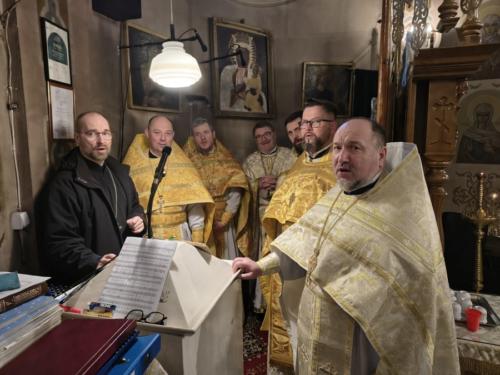 11 i 12 grudnia 2025 r., z błogosławieństwa Jago Eminencji, Wielce Błogosławionego Sawy, Metropolity Warszawskiego i Całej Polski, w Parafii prawosławnej p/w św. wlk. męcz. Jerzego Zwycięzcy w Siemianówce odbyły się rekolekcje duchowieństwa Dekanatu Hajnowskiego Diecezji Warszawsko – Bielskiej. We czwartek wieczorem duchowni przystąpili do sakramentu pokuty. W piątek rano zebrali się na św. Liturgii, której przewodniczył Jego Ekscelencja, Najprzewielebniejszy Paweł, Biskup Hajnowski. Podczas Liturgii kazanie wygłosił ks. Tomasz Puczko, wikariusz Parafii p/w św. Mikołaja Cudotwórcy w Narewce. Kaznodzieja zwrócił uwagę zebranych na konieczność zachowania podczas postu bezustannej duchowej czujności. Szatan bowiem nie ustaje w swych podstępnych działaniach, na które narażony jest każdy człowiek. Życie to bezustanna walka z pokusami i słabościami. Walka z diabłem, w której najskuteczniejszą bronią jest post i modlitwa. Po zakończeniu św. Liturgii do zebranych zwrócił się Jego Ekscelencja biskup Paweł, który w pouczających słowach przypomniał o istocie i znaczeniu świętych sakramentów pokuty i Eucharystii, będących najdoskonalszą formą dążenia człowieka ku przebóstwieniu. Grzech oddala człowieka od Boga. Święty sakrament spowiedzi, szczera pokuta pozwala człowiekowi do Boga się zbliżyć. Wyznając swe grzechy przed Bogiem, powinniśmy to czynić tak, jakby to była nasza ostatnia okazja ku temu. Niczego nie ukrywając, błagać o wybaczenie, nie licząc na to, że może jeszcze kiedyś będzie na to lepszy czas. Tylko taka prawdziwa pokuta prowadzi do zjednoczenia z Bogiem w świętej Eucharystii –powiedział między innym biskup Paweł. Na zakończenie głos zabrał dziekan Dekanatu Hajnowskiego, ks. mitrat Sergiusz Korch, który w imieniu dekanalnego kleru podziękował Jego Ekscelencji biskupowi Pawłowi za przewodniczenie tegorocznym rekolekcjom, arcypasterską troskę i ojcowską opiekę. Na słowa podziękowań zasłużyli również spowiednicy sumiennie wypełniający powierzone im obowiązki oraz proboszcz parafii w Siemianówce, ks. prot. Walery Piotrowski, odpowiedzialny za przygotowanie rekolekcji.