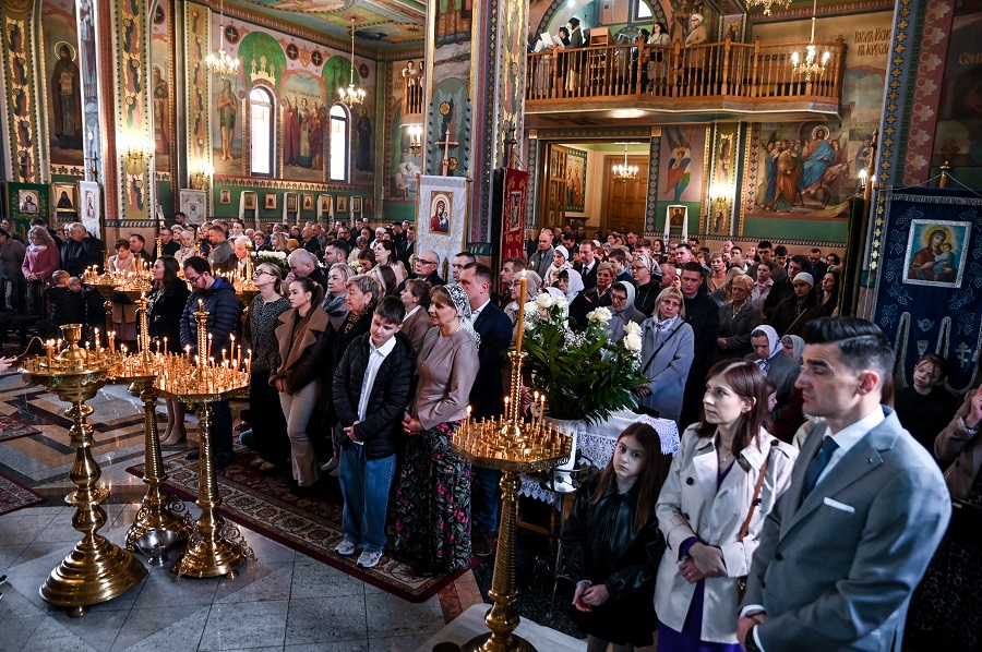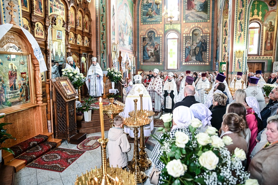 Zmartwychwstanie Pańskie, Święto świąt i uroczystość nad uroczystościami, Pascha Chrystusowa to podstawa naszej wiary. Apostoł Paweł wyraża tę prawdę, mówiąc: Jeśli Chrystus nie zmartwychwstał, daremne jest nasze nauczanie, próżna jest także wasza wiara… tymczasem jednak Chrystus Zmartwychwstał jako pierwszy spośród tych, co pomarli (1 Kor. 15,14-20). Zwiastowanie tej prawdy jest misją Cerkwi, modlitewne przeżywanie Zmartwychwstania Jezusa Chrystusa jest zaś świętym obowiązkiem tych, którzy mianują się Jego uczniami. 13 kwietnia 2026 r., drugiego dnia Paschy Chrystusowej, świątecznym uroczystościom w Parafii św. Dymitra w Hajnówce przewodniczył Jego Ekscelencja, Najprzewielebniejszy Paweł, Biskup Hajnowski. Ten wyjątkowy dzień był również liturgicznym dziękczynieniem z okazji Jubileuszu 30-lecia Parafii p/w św. wlk. męczennika Dymitra Sołuńskiego w Hajnówce, powołanej do życia 30 kwietnia 1996 r. Podczas świętej Liturgii Jego Ekscelencja zwrócił się do zebranych ze słowami kazania, mówiąc między innymi: Zmartwychwstanie Zbawiciela radykalnie zmieniło życie apostołów, przekształcając ich z bojaźliwych i wątpiących w odważnych świadków zmartwychwstałego Jezusa. To wydarzenie stało się dla nich początkiem nowej rzeczywistości, pełnej wiary i misyjnego zapału. Zmartwychwstanie Pańskie powinno nieustannie wpływać na życie każdego z nas. Dodawać sił i odwagi aby swoim postępowaniem, życiowymi wyborami świadczyć o naszej wierze, prawdzie i miłości. Jego Ekscelencja podkreślił, iż Zmartwychwstanie Jezusa Chrystusa, ma wymiar ponadczasowy. Jest aktualne zawsze. Wiara w Zmartwychwstanie Pańskie powinna towarzyszyć nam w każdym momencie naszego życia.