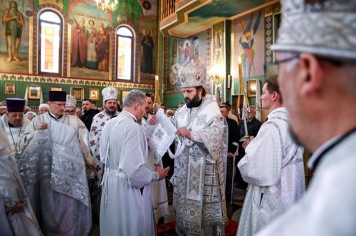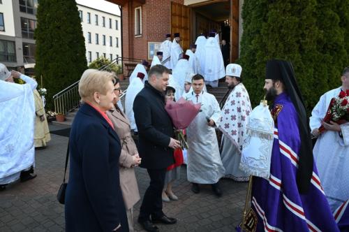 Zwieńczeniem św. Liturgii była uroczysta procesja wokół świątyni, podczas której Jego Ekscelencja biskup Paweł poświęcił jubileuszowy krzyż, wzniesiony na pamiątkę 30-lecia Parafii. Na zakończenie biskup Paweł zwrócił się do zebranych podkreślając, iż 30-lecie Parafii św. Dymitra w Hajnówce jest wielkim świętem całej lokalnej społeczności. Dzisiejsza św. Liturgia była dziękczynieniem za trzy dekady pięknej historii tego miejsca, wypełnionej trudem i poświęceniem wszystkich zaangażowanych w budowę cerkwi i rozwój wspólnoty parafialnej. W imieniu Jego Eminencji, Wielce Błogosławionego Sawy, Metropolity Warszawskiego i Całej Polski dziękuję wszystkim kapłanom niosącym w Parafii św. Dymitra w Hajnówce swoją posługę na przestrzeni 30 lat, władzom samorządowym wszystkich szczebli, które niezmiennie wspierały dzieło budowy świątyni i do dnia dzisiejszego ofiarowują swą pomoc, budowniczym, kwestującym, dobroczyńcom i przede wszystkim wam, miejscowym parafianom! To potrzeba waszych serc zbudowała to miejsce! Zapewniamy was o naszej modlitwie i prosimy aby Parafia św. Dymitra w Hajnówce zawsze była pięknym świadectwem miłości do Boga i świętej Matki Cerkwi.
